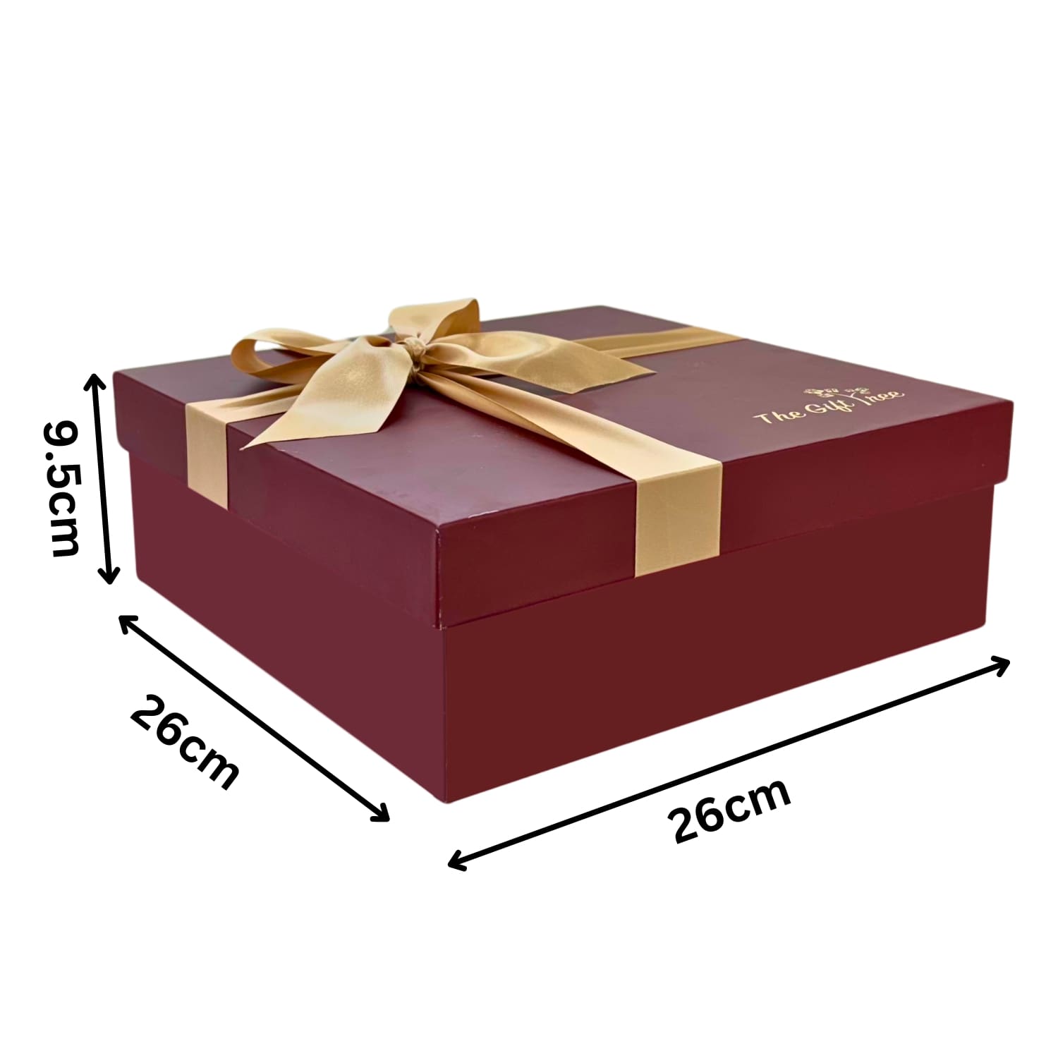 • Premium Maroon Box with Satin Ribbon bow 27*27*10.