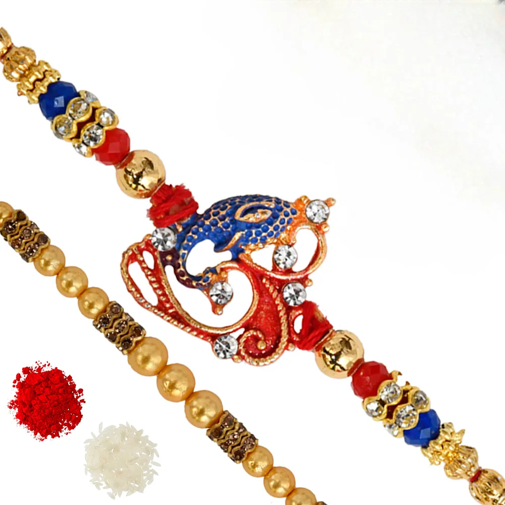 The Gift Tree Diamond Ganpati Fancy Beads Rakhi For Brother With Roli, Chawal and Beautiful greeting card | Premium Rakhi for Men, Kids & Boys