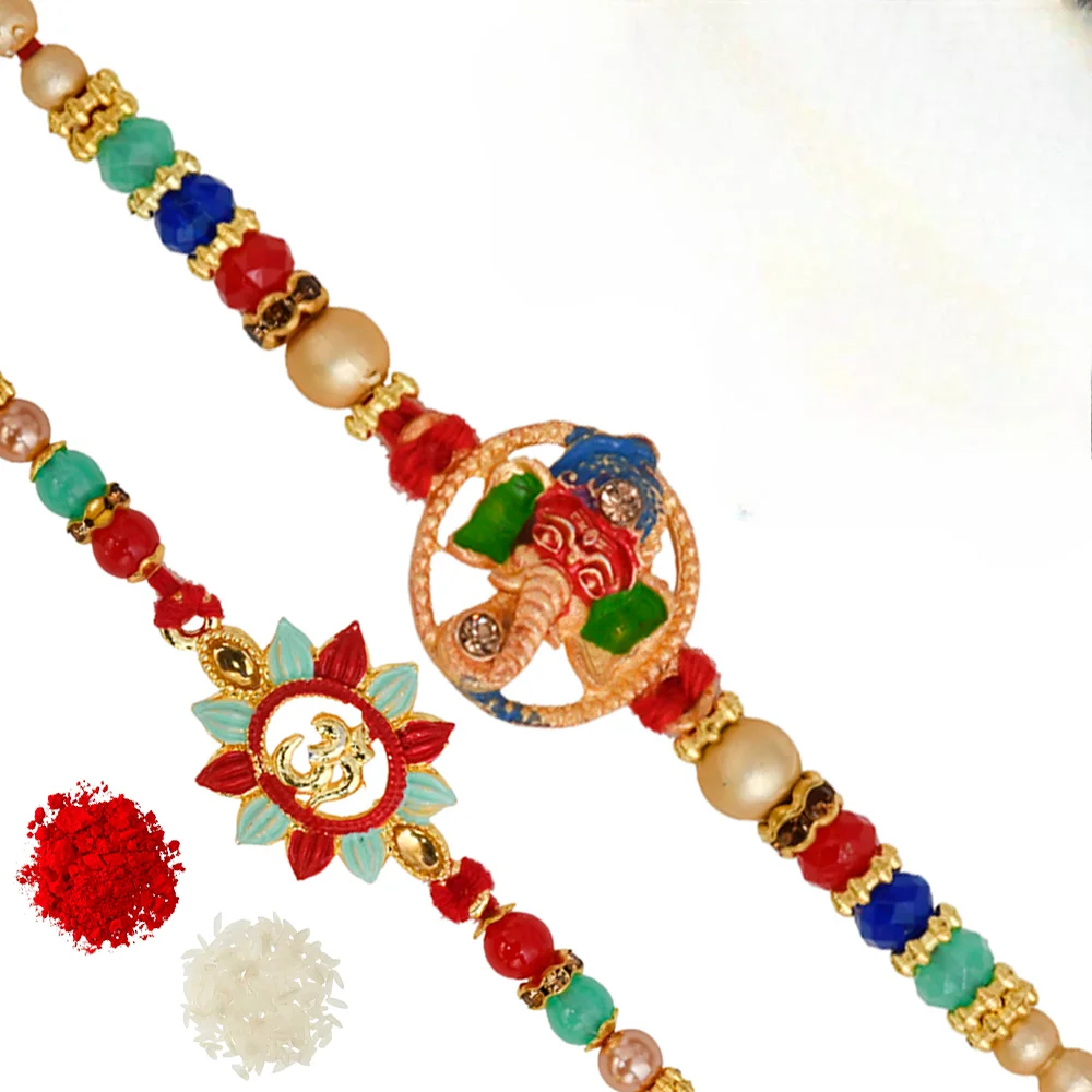 The Gift Tree Om Ganpati Fancy Designer Beads Rakhi For Brother With Roli, Chawal and Beautiful greeting card | Premium Rakhi for Men, Kids & Boys