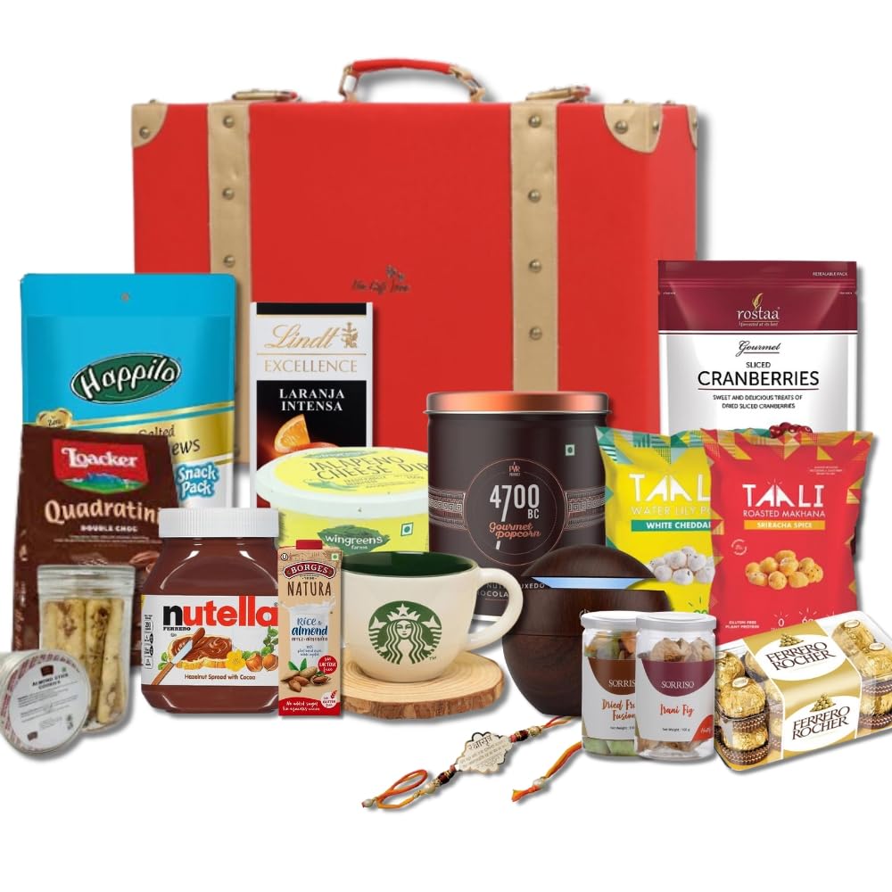 Be the first to review “The Gift Tree Royal Treat Leatherite Trunk Rakhi Gift Hamper | Premium Mug, Humidifier, Chocolates, Almond Sticks, Cookies & Makhana | Silver Premium Rakshasutra Rakhi”